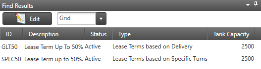 - Grid: The ID, Description, Status, Type, and Tank capacity will display.