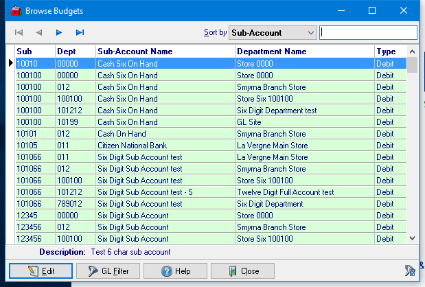 Use the Browse Budgets window to locate existing General Ledger accounts available for a Budget. Sort the Browse Budgets grid then select the button to edit or review a Budget or double click to open.