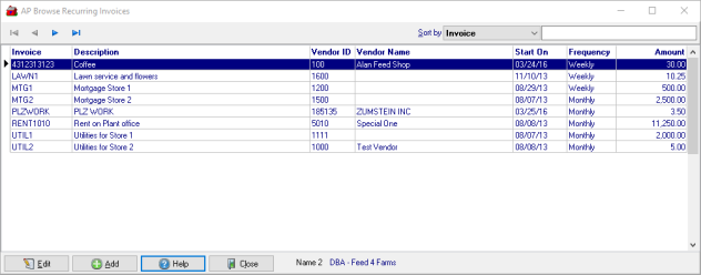 Frequency indicates how often the invoice recurs, Monthly, Weekly, Quarterly or Annually