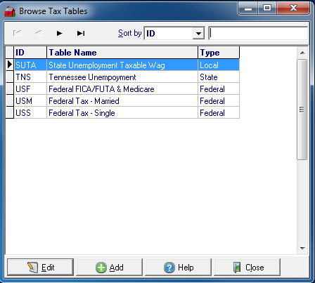 Use the Browse Tax Tables window to locate existing or to add Tax Tables Sort the Browse Tax Tables window or select to create a new Tax Table. Select the