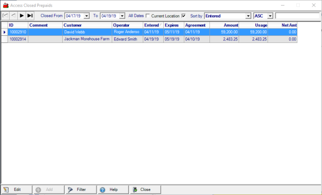 Access Closed Prepaids list all Prepaids that have been set to a Status of Closed.