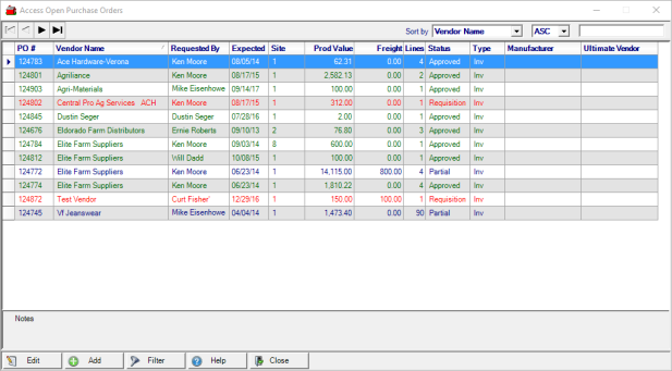 Access Open Purchase Orders