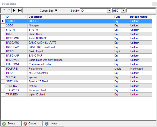 Select Current Site to view only the Blends available to the current site.