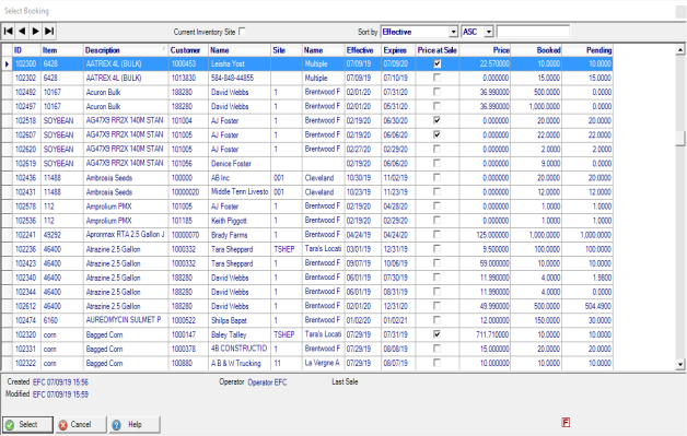 Choose a completed or open Booking. Use the Legend to determine if the Booking is Open or Complete.