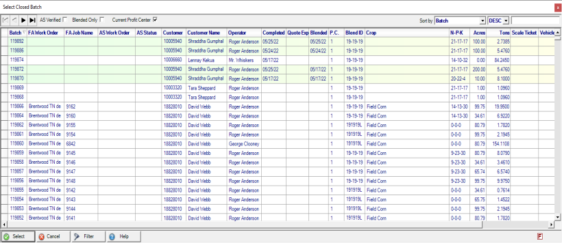 Select Closed Batch