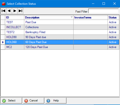 Review and select the available Collection Status.