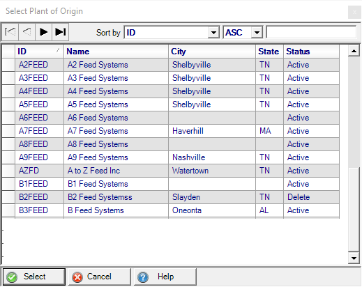 ID and Name of the Plant of Origin.