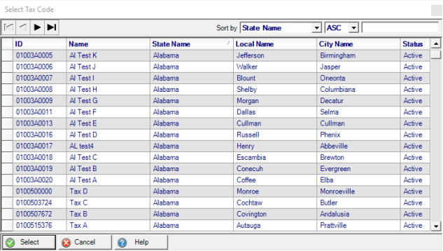 Status defaults to only active Tax Codes.