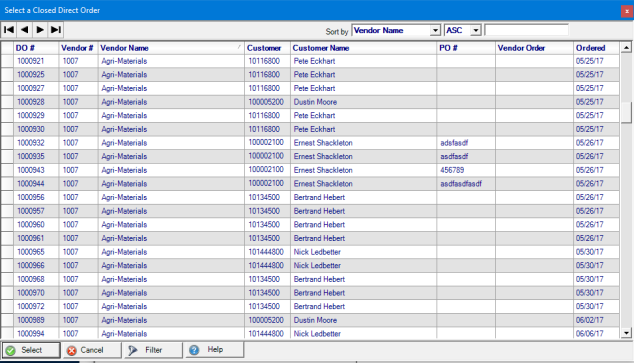 Select a Closed Direct Order