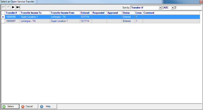 Status sorts by the Status of the Service transfer, Entered or Pending.