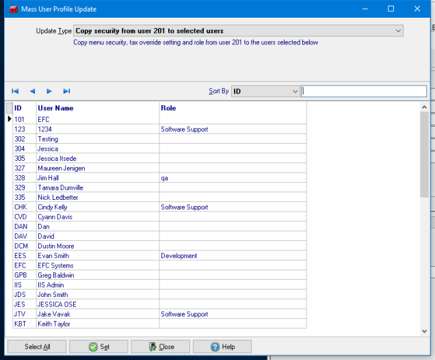 - Copy security from user to selected user
