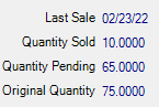 Last Sale- Displays the Date the Booking was referenced on a sale. Quantity Sold- Up to date quantity of the booked Item Sold.Quantity Pending- Difference between the Quantity Booked and the Quantity Sold.