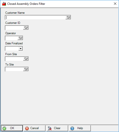 Add a Closed Assembly Order Filter when searching for a Closed Assembly Order by entering information in one or multiple fields.