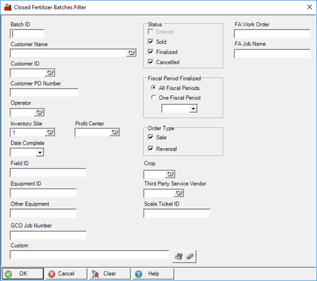 Use one or multiple filters to limit the number of batches listed in Select Closed Batch.