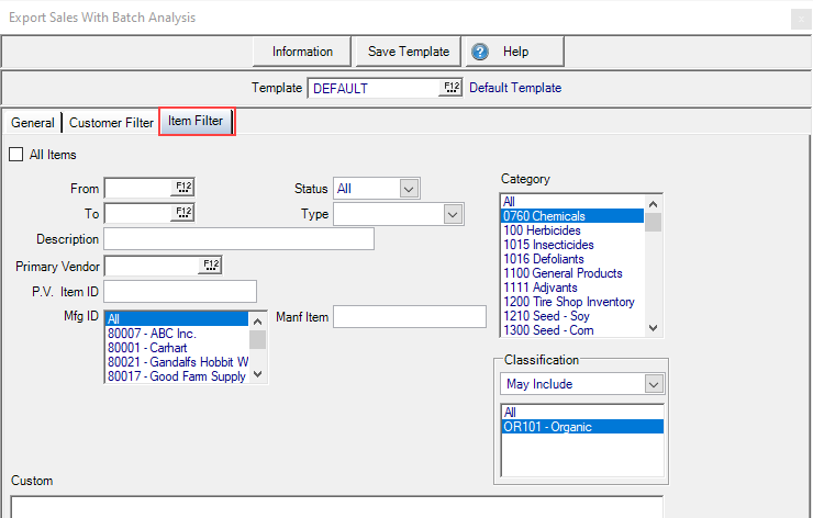 Use the Manufacturer ID drop down list to select one, multiple or all Manufacturers.