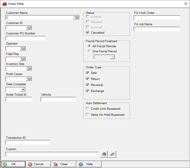Customer PO Number can be entered to locate only orders with a PO number entered.