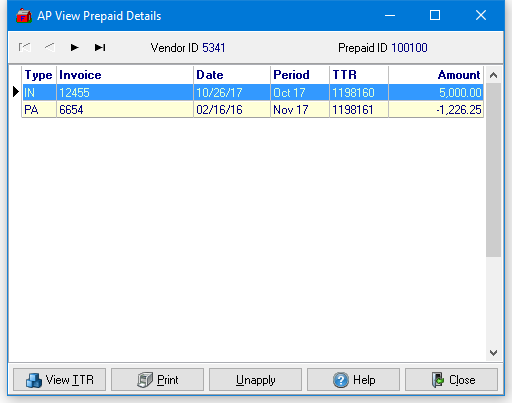 Select a Prepaid Application and then the to remove the Prepaid application from an invoice.