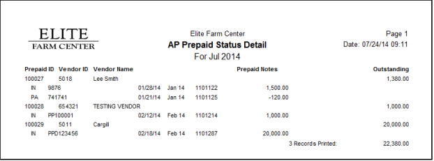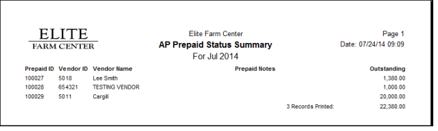 Report total- Counts the number of Prepaids on the report and totals the Outstanding column.