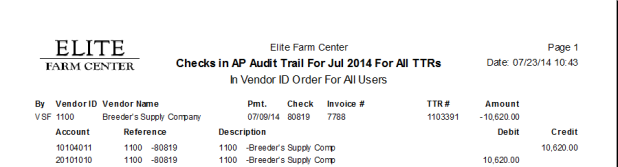 Sample Audit Trail for Checks, Credit Memos or Invoices.