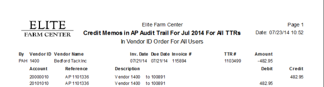 Click here to view a sample and learn more about the Credit Memos in AP Audit Report