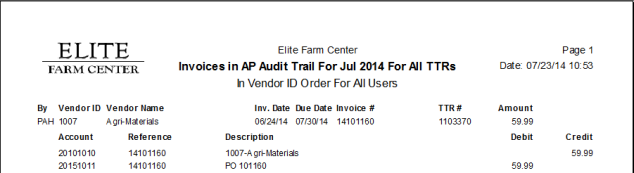 Description- The Vendor ID, Name and any Purchase Order number referenced during Invoice entry.