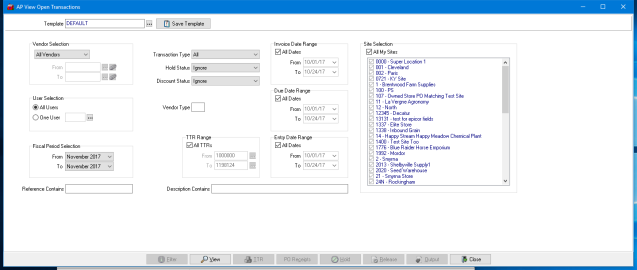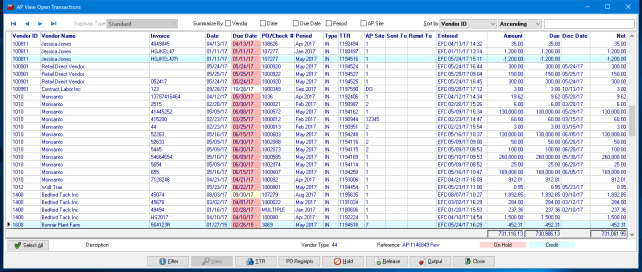 Invoices can be placed On Hold easily or released using the new View Open Transactions option. Use the View Open Transactions to create a filter using one or a combination of fields to display only the needed transactions.