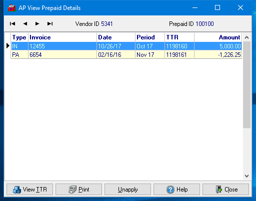 Prepaids that have been applied to an invoice can be reversed using the Unapply button. This option is only available to PA type transactions.