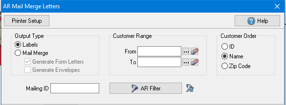 Create Customer Labels, a Mail Merge Letter, or Envelopes using Mail Merge Letters.