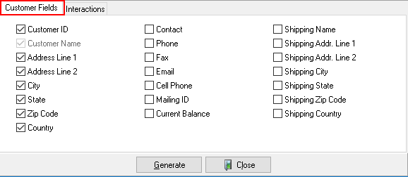 Select the fields to be included in the mail merge letter or mailing label from the Customer account.