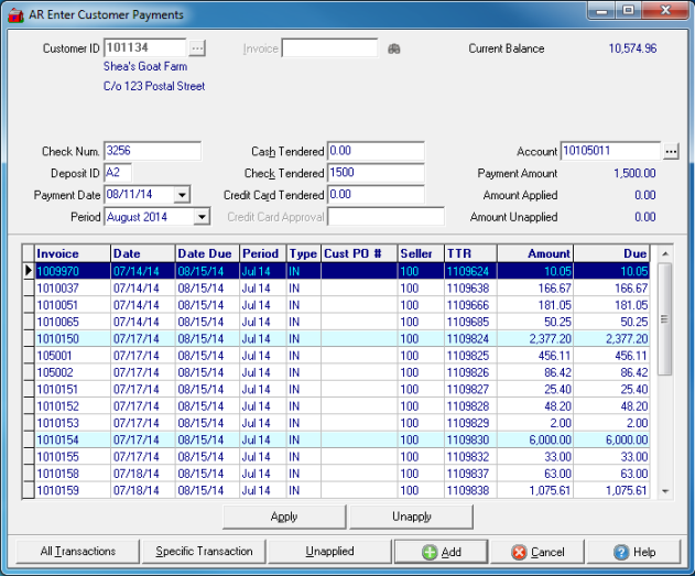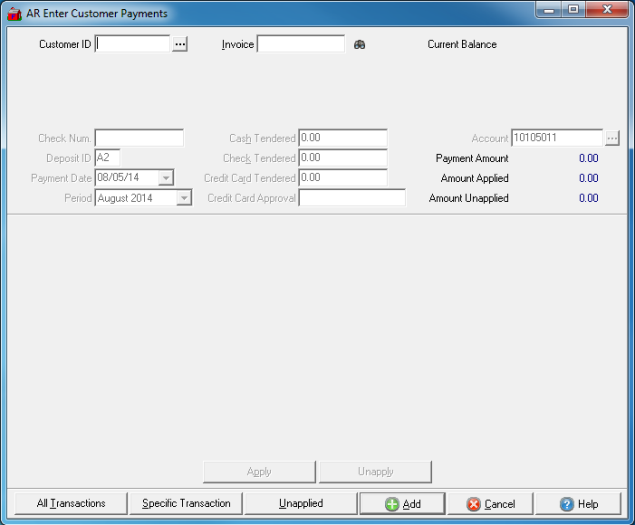 Active if Specific Transaction selected. Select the Invoice to apply all or a portion of the payment. In the Enter Customer payment window, confirm the amount of payment to be applied to the invoice.