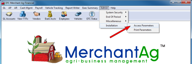 Review the options selected for Menus and functions within Merchant Ag PM and Merchant Ag FIN using Access Parameters. The Parameters displayed that are not applicable to your location or circumstances are intended as informational only.
