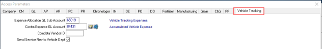 Set the General Ledger expense accounts to be used with Vehicle Tracking.