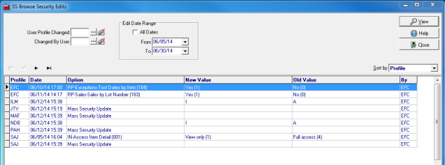 Edit Date Range is used to review the security changes made on all Dates or within a date range.
