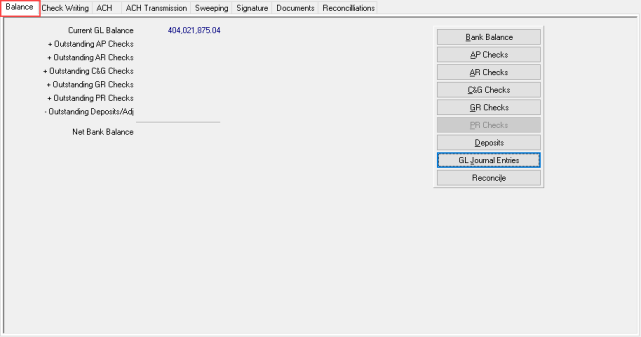 Use the Net Bank Balance amount to learn the current net Bank Balance which is the Current GL Balance and Outstanding Balances factored.