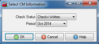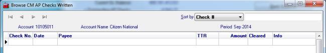 After selecting the type of check to view and choosing the appropriate Check Status, the Browse CM Checks Written window opens.