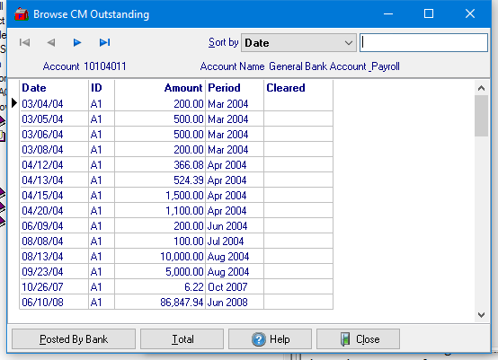 5. Mark Deposits as Posted. Using your Bank Statement, click on each Deposit that has cleared the bank. Click on each deposit to select it then click the Posted by Bank button.