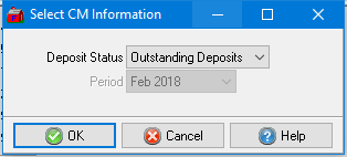 3. In the select CM Information window, use the Deposit Status drop down menu to select either