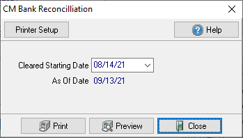 Choose the Cleared Starting Date which would be the date of the oldest check included in the bank statement.
