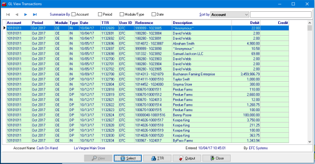 - Account- Each account is totaled with the account number and debit or credit total displayed.