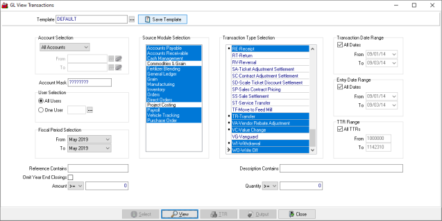 Select the checkbox Omit Year End Closings to omit viewing Year End Closings.