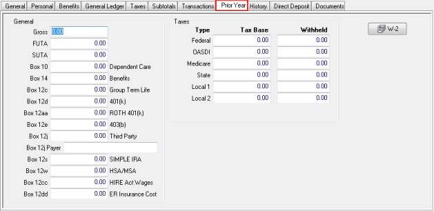 If necessary, use the W-2 button to print a copy of the employee's Prior Year W-2.