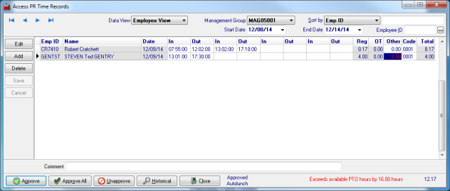 Approve, Edit or Add Time records for Employees using Chronologer to record time worked.
