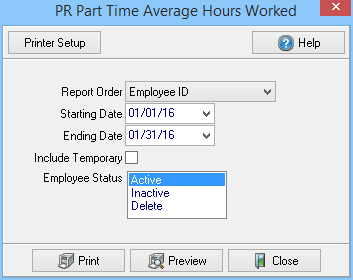 Use the Part Time Average Hours Worked near the end of the year to view which employees are near full-time equivalents to facilitate the offering of health insurance benefits.