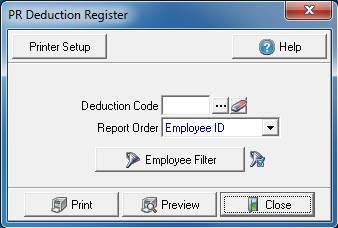 Create a Deduction Register for an individual Deduction Code listing the Employees and their current and Year To Date amounts.