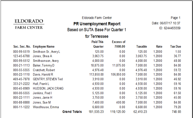 Rate- Tax Rate which varies depending on if this report is for FUTA or SUTA.