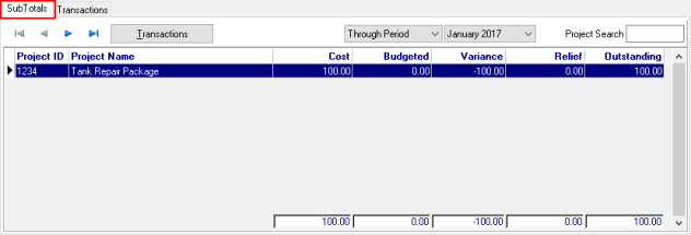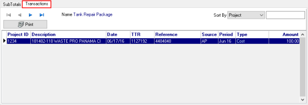View the list of all Transactions entered for a Project.