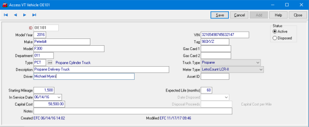 When the Vehicle status is changed to Disposed, enter the Date Disposed the vehicle is removed from Vehicle tracking.