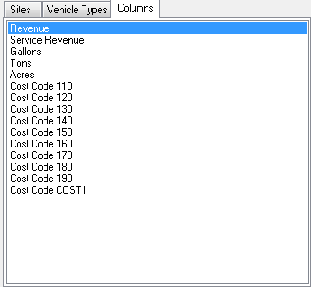 Select up to five Columns of all Revenue types and Cost Codes available to be selected individually or as a group to view the report on-screen. To select more than five columns, select the Export option.