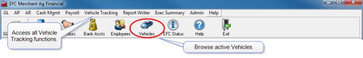 Use Vehicle Tracking to track the revenue generated and expenses incurred by company vehicles used in Orders and Batches. Use Merchant Ag FIN to select parameters to control how vehicles will be used in Merchant Ag PM.