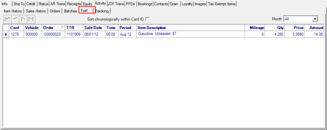View only information regarding fuel purchases for the selected period. Use the drop down menu available in the Month field to view All months or select an individual month.